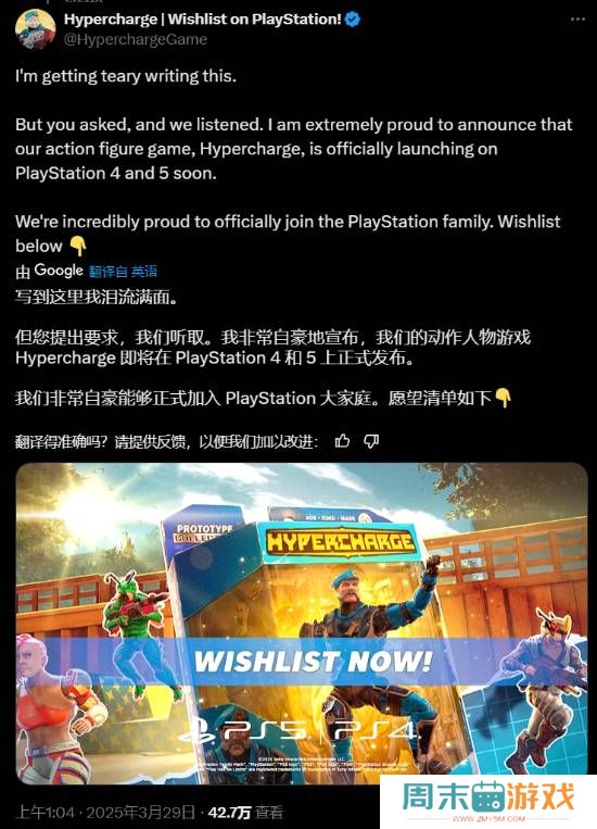 今日官方发布动态,庆祝已有3万名PlayStation玩家将这款游戏添加到了愿望清单中!