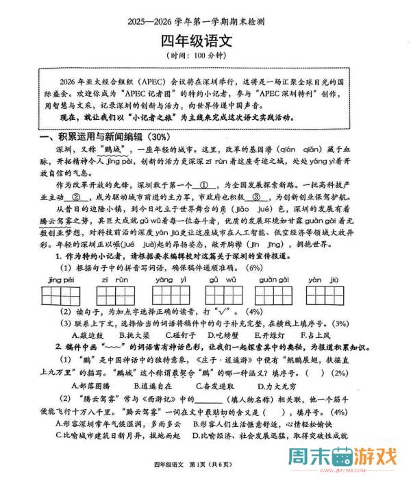 深圳小学期末考题被挤上热搜 网友:堪比公务员行测