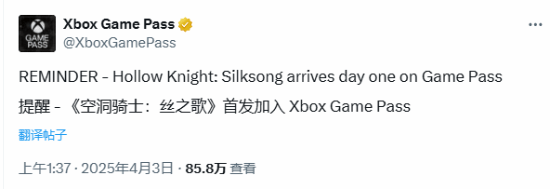 Xbox再提醒《空洞骑士:丝之歌》首发入XGP!你会第一时间玩吗?