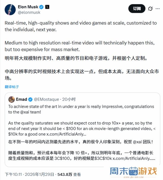 明年AI会支棱起来?马斯克:可大量生成高质量游戏!